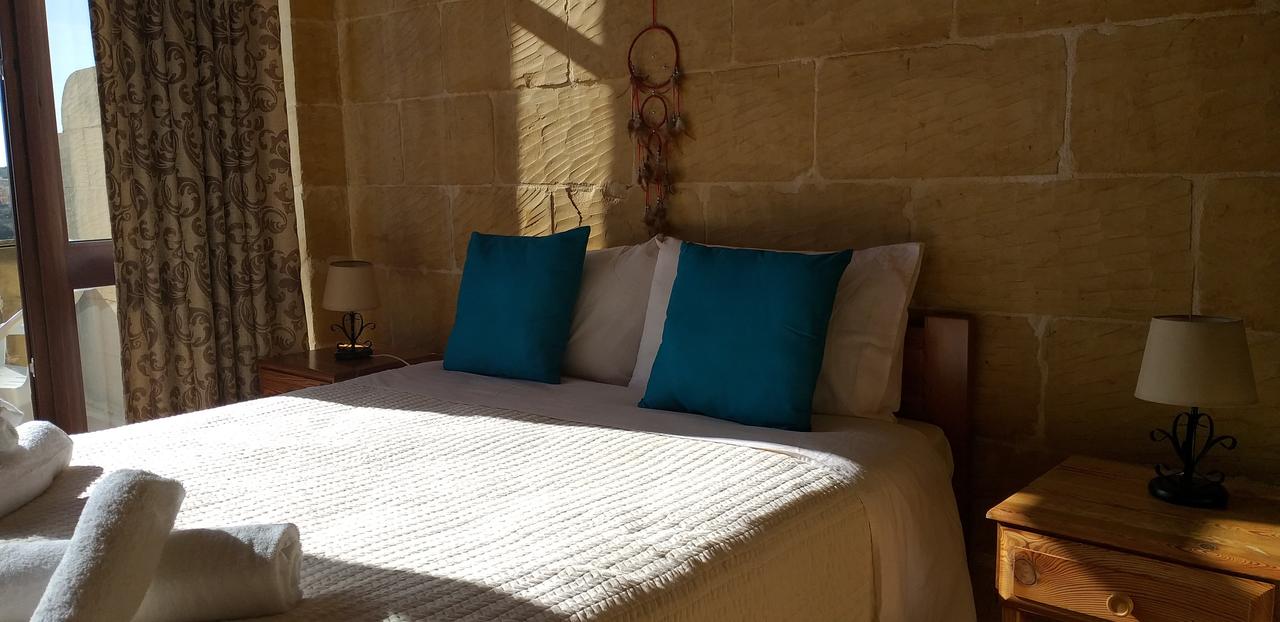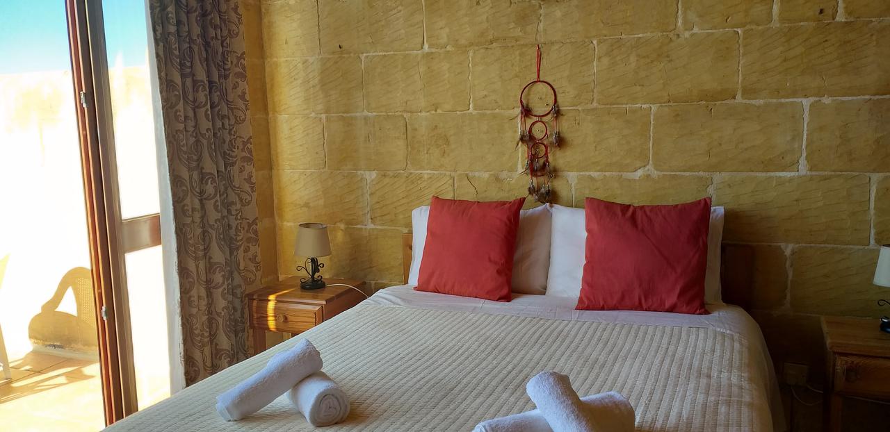 » Dream Castle Room – shared 2-singlebed room with bathroom, access to a huge terras & epic sea views of the Blue Lagoon, Comino and Malta. This room is very spacious and is not without reason called the DreamCastle Room.