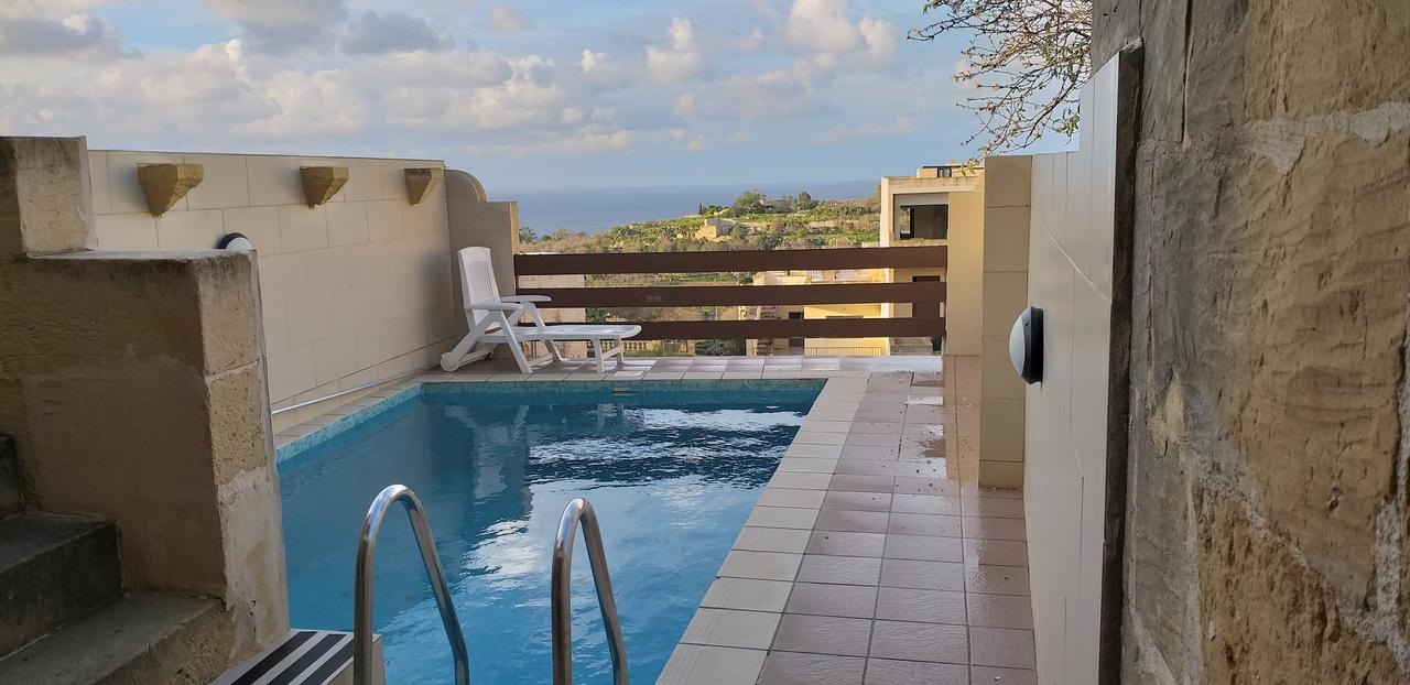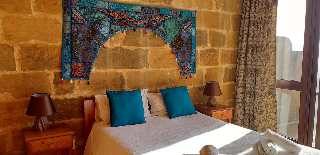 The retreat is held at the Healing Tree retreat house. A beautiful Gozitan farmhouse tucked away in the countryside, which has been renovated and kept in old-modern style, offering comfort, charm and relaxation. The moment I stepped into this house, I felt an embrace of being at home. The closest beach is at about a 10-minute walk. From here we will move into the daily programme and have our brunches/dinners in the living room. There are 2 luxious bedrooms available at the Healing Tree, overlooking the private pool and epic sea views of the Blue Lagoon, Comino and Malta. In the cave room you can book your extra individual sessions. Some of the group sessions will be held at the terras at the upper floor, accessed by the DreamCastle room. This huge terras offers the most beautiful views over the ocean and countryside.